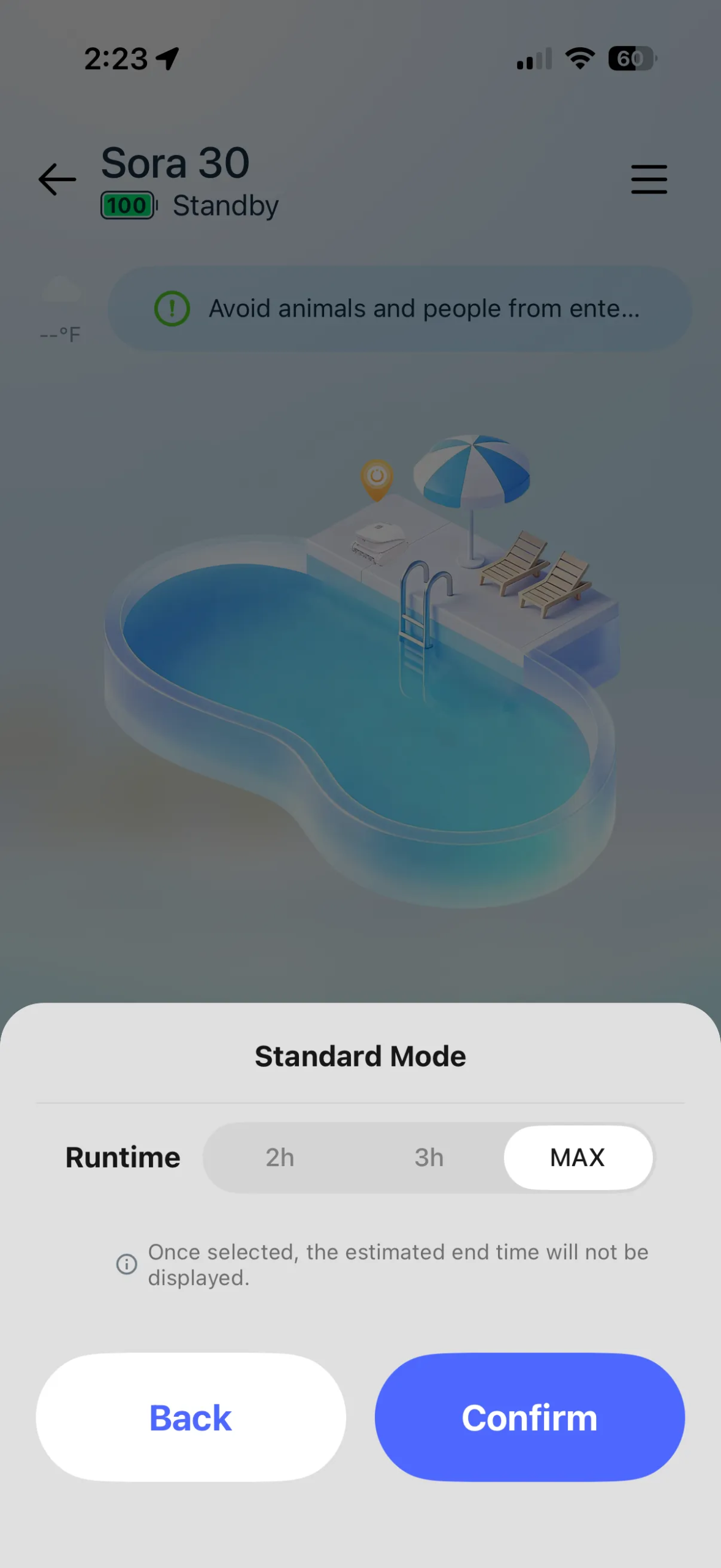 In the water, the unit offers a scant three operational modes—floor mode, standard mode (which handles floor, wall, and waterline), and eco mode (which runs a floor-only cleaning for 45 minutes every 48 hours). Both floor and standard mode offer three running-time options: two hours, three hours, or max (i.e., run until the battery’s almost dead). These can all be selected through the Beatbot app, which is available via Bluetooth or either 2.4 GHz or 5 GHz Wi-Fi. You’ll also need to set up Wi-Fi for firmware updates.