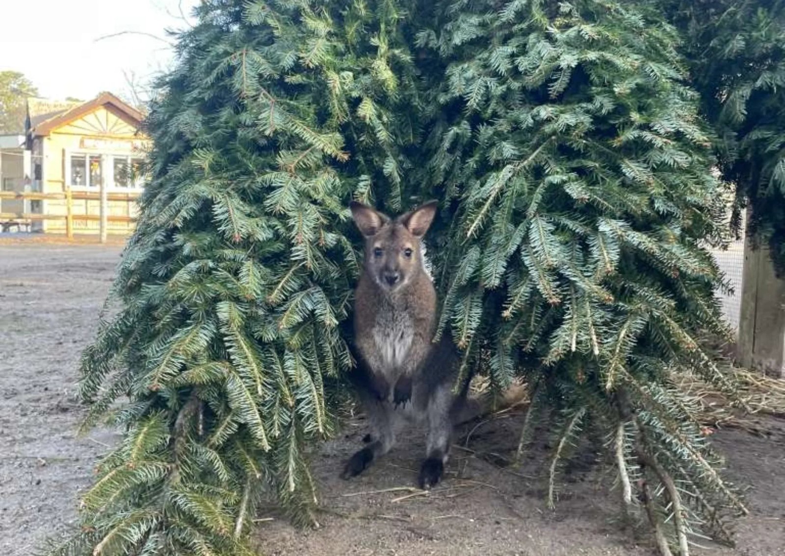 The nearby kangaroos will often make little enclosures out of stacked Christmas trees so that they have another warm place to go.