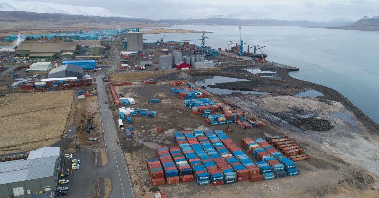 A pile of wood chips left by Running Tide at Grundartangi, filmed in October 2024.