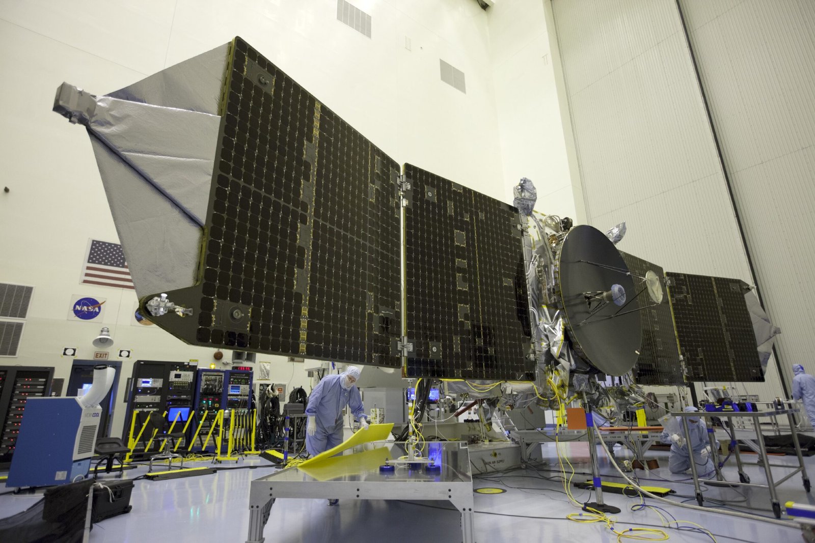 Technicians work on the MAVEN spacecraft at NASA’s Kennedy Space Center in Florida ahead of its launch in 2013.