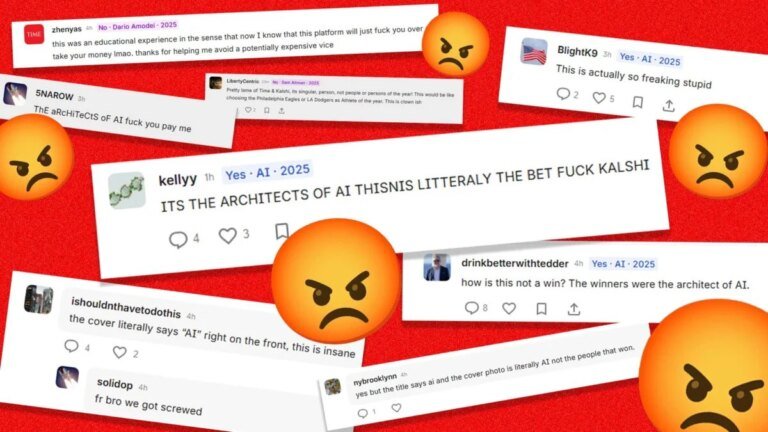 Time Magazine revealed its Person of the Year for 2025. It wasn’t one person, but many different people who are all at the helm of pushing AI technology. This has caused some prediction market gamblers who had bet on AI itself earning the distinction to start yelling a lot online. It’s very funny, but also a horrible glimpse at our bet-on-everything future.