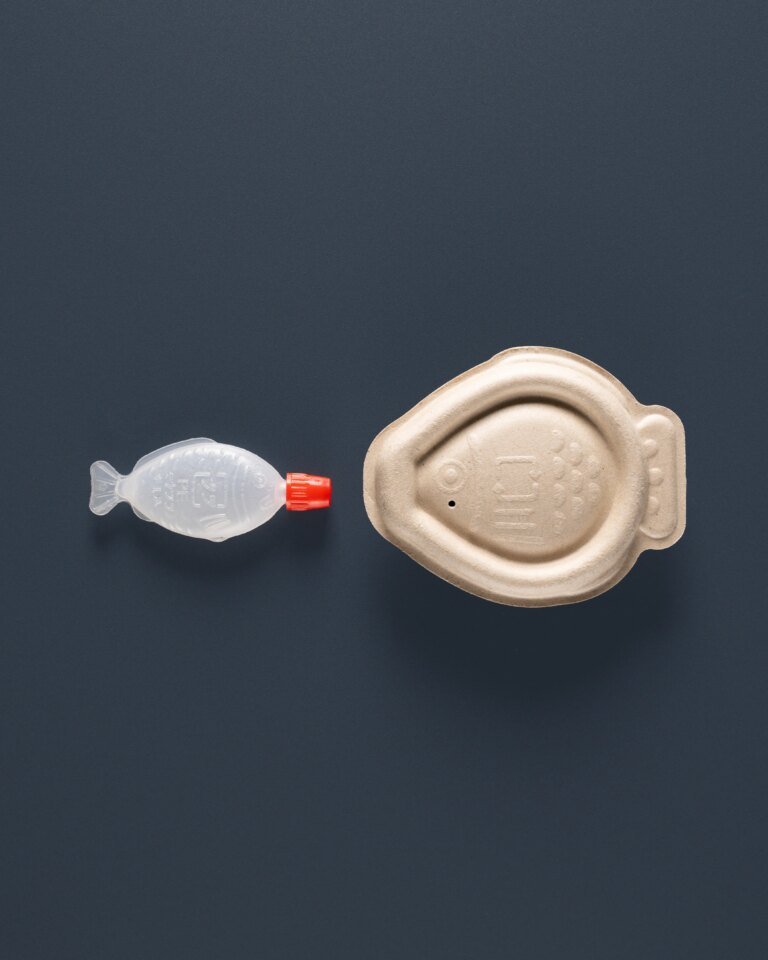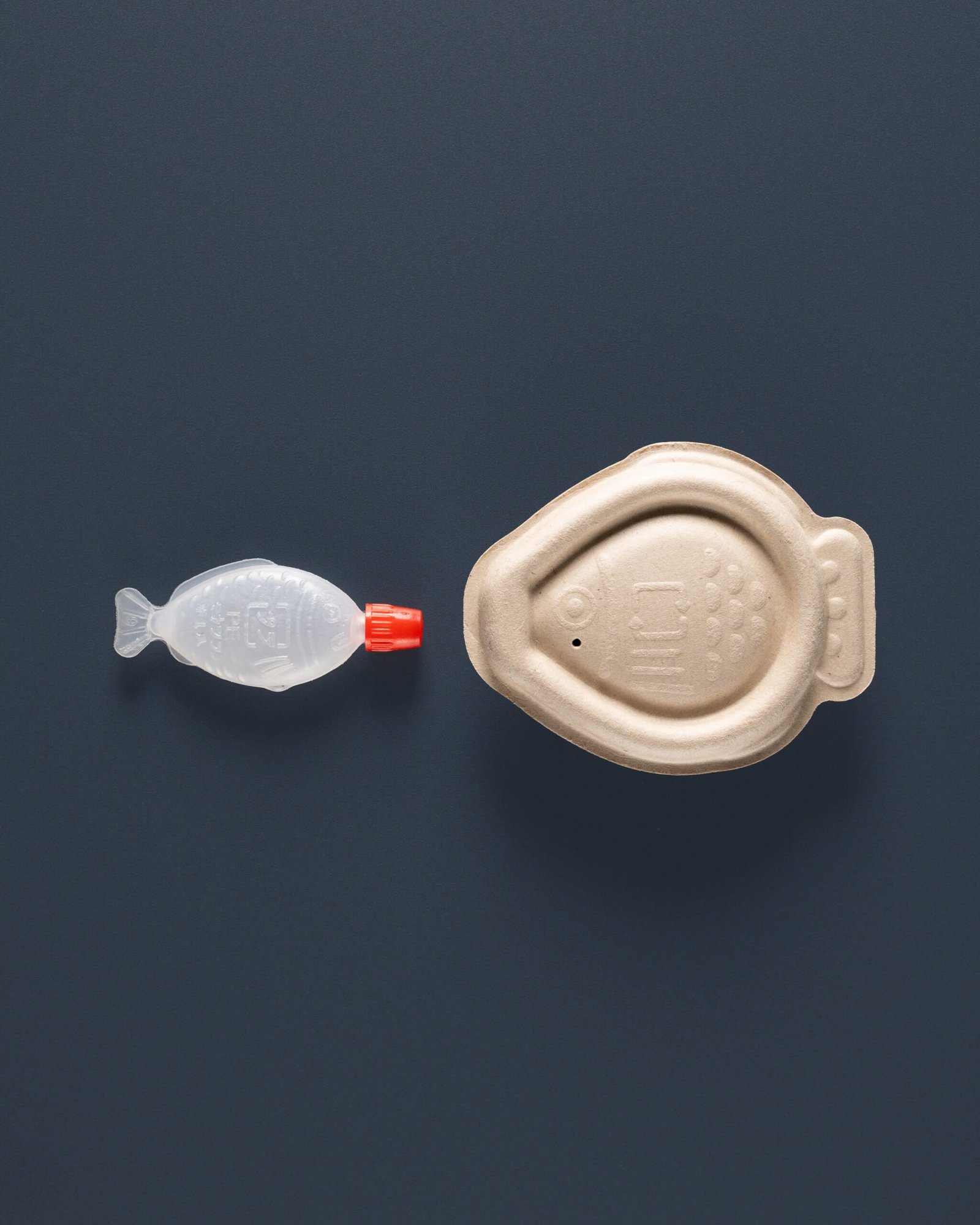 Heliograf and Vert Design say they gathered feedback from restaurants to arrive at a design that preserves some of the original fish’s emotional nostalgia, while prioritizing sustainability. The new container is made primarily from bagasse pulp, a byproduct of sugarcane production that has already been proven effective in other biodegradable packaging. When diners squeeze the fish’s engorged belly, soy sauce trickles out through a small dropper near its head. The team says the container is made entirely without PFAS, synthetic compounds that can take thousands of years to degrade, often called forever chemicals .