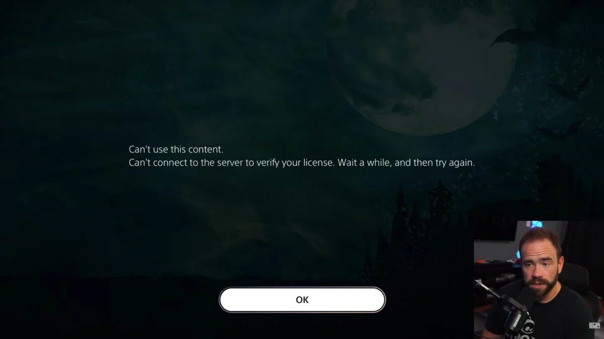 In Spawn Wave’s video, he removes the CMOS battery on a PlayStation 5 and attempts to boot two digital games that he purchased this month: Saint Slayer: Spear of Sacrilege and Vampire Crawlers. Both times, he’s greeted with an error message stating “Can’t use this content. Can’t connect to the server to verify your license. Wait a while, and then try again.”