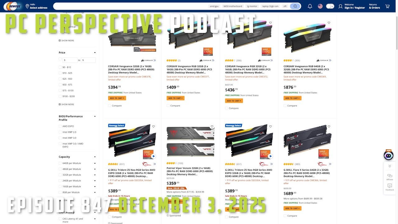 Yes, we talked about DDR5 pricing a lot, again.  But we also talked about a very special Intel 18A customer, one billion PCs screaming out in pain (it’s a metaphor!), AMD CPU / GPU pricing trends, ASUS router vulnerabilities (again), alternatives to Windows for playing games which includes playing web based old console games.  It’s a thing.  Also, we virtually pour one out for Crucial (Micron).