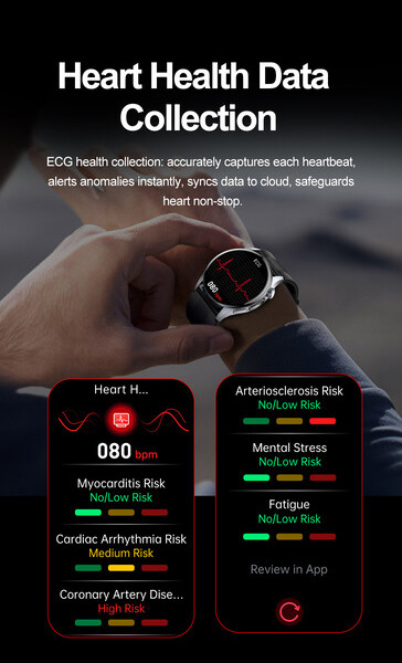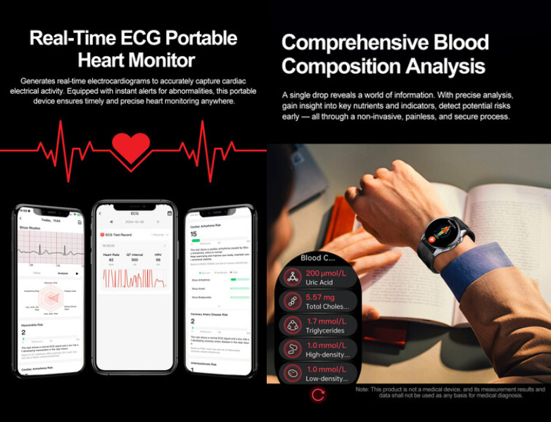 ECG sensing has also been updated as Rogbid has moved to Texas Instruments’ AFE4950 chip. The company claims it supports synchronized optical and electrical readings. The watch uses conductive glass and side electrodes to complete the ECG circuit, and the company claims this enables millisecond-level signal capture.