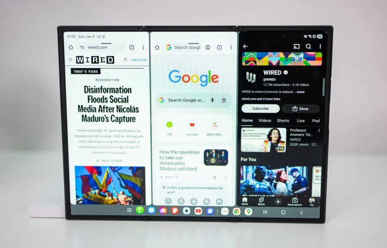 Fold it up, and you’re looking at a thickness of 12.9 millimeters, which is just a smidge chunkier than the Galaxy Z Fold6 (12.1 mm). The fact that it’s roughly the same thickness as a prior generation fold, yet with a dramatically larger screen, is impressive. It makes the bulk a little more palatable.