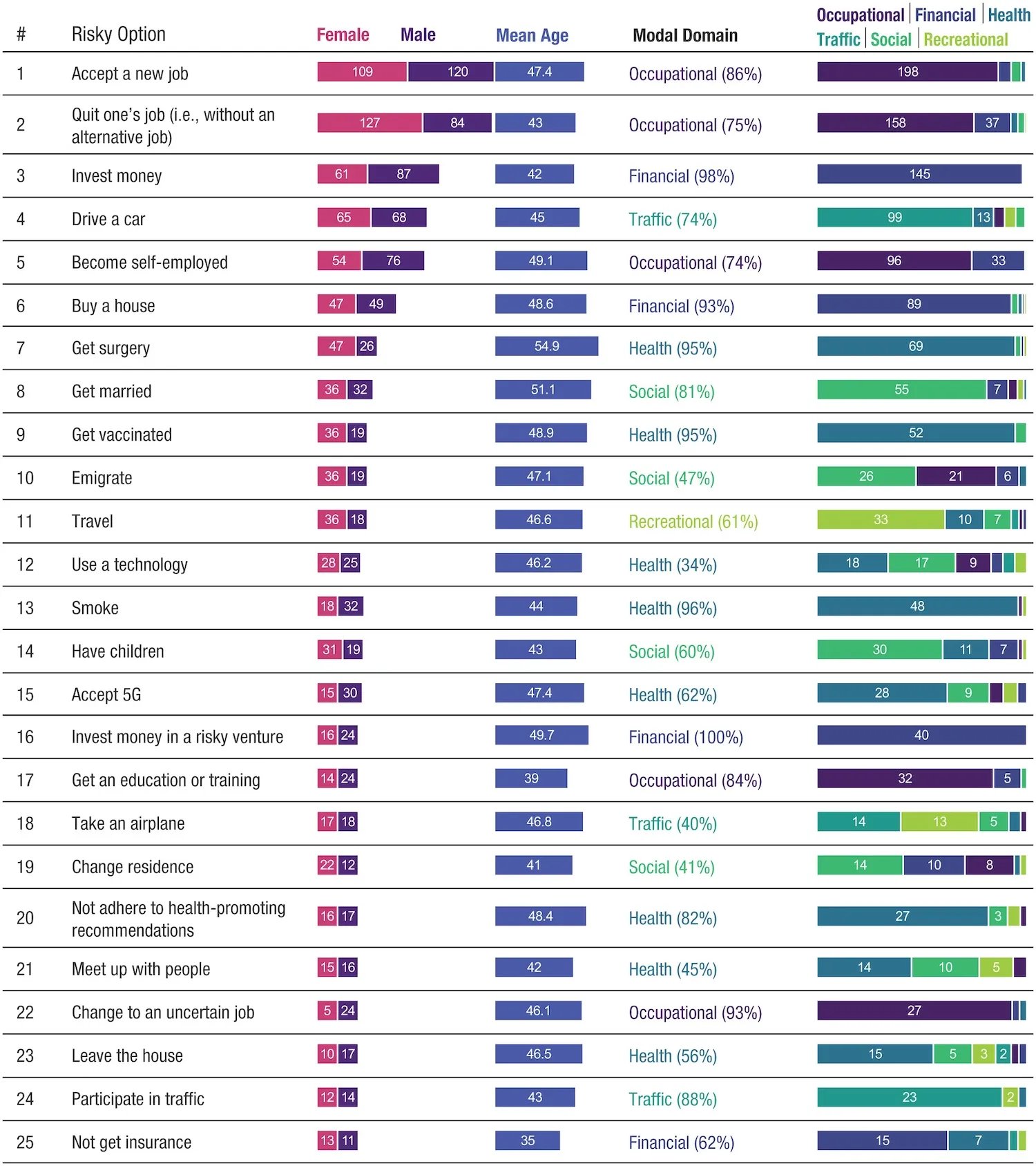 “In a relatively straightforward way, we just asked our study participants to report a single risky choice,” Frey said in a statement. “By and large, the distributions of these risky choices to different life domains stay fairly constant.