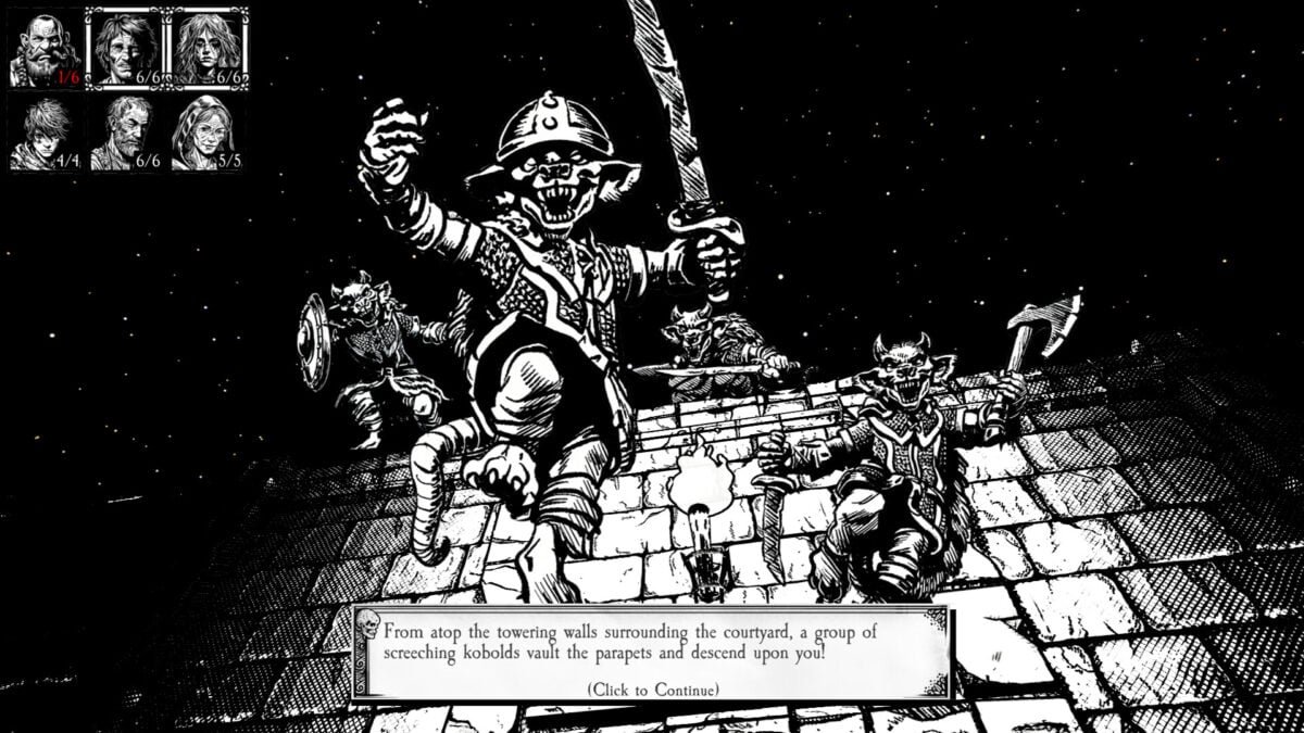 And nowhere is this old-school sensibility more obvious than in the game’s wonderful black-and-white art, which evokes the images we’d so often see in those early D&D modules. The hand-drawn images that filled their pages fired the imaginations of millions of D&D players in the 1970s and ’80s, cultivating a sense of mystery and dread about what could be lurking in whatever dangerous tomb or tower into which we were recklessly venturing. The Secret of Weepstone made me feel that way again, always on edge about what deadly trap or fearsome foe could be waiting in the next chamber or around the next corner. Somehow the art’s black-and-white approach, so familiar to me from those old D&D modules, was enough in and of itself to make everything feel more dangerous.
