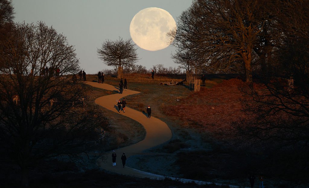 The Wolf Supermoon sets over Richmond Park in London early on Jan. 3. (Image credit: Henry NICHOLLS / AFP via Getty Images)