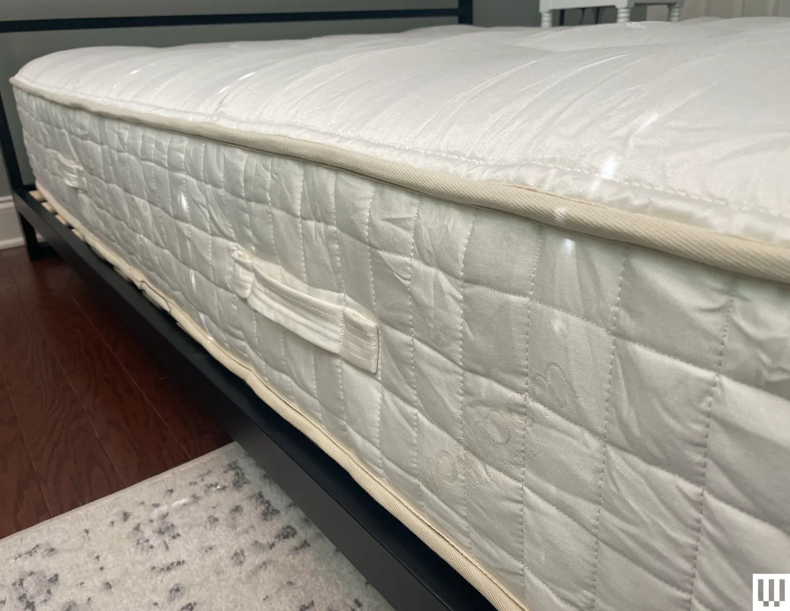 In this hybrid mattress, aside from the cover, the key components are wool and a whopping 8,500 individually pocketed nano, micro, and standard pocketed coils. Wool is like the jack-of-all-trades of the mattress world, as it can be used for support, airflow, cushioning, and even as a natural fire retardant. Specifically, the outer cover is made from a merino wool blend with a hand-tufted surface, which helps keep the top layer of wool in place.